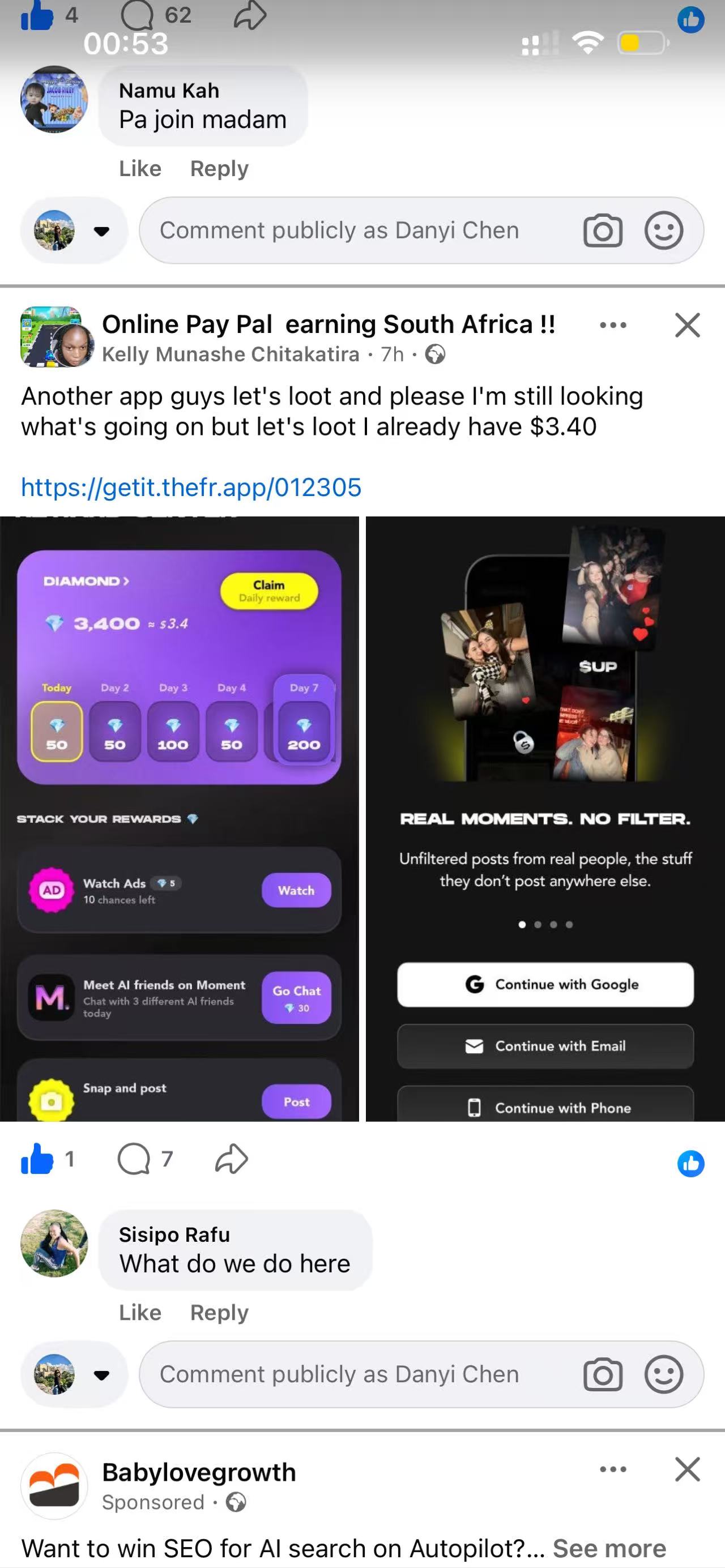 InstagramUnlock content, collect diamonds, cash out 💸 Fr. App really pays out. My PayPal keeps getting notifications lol