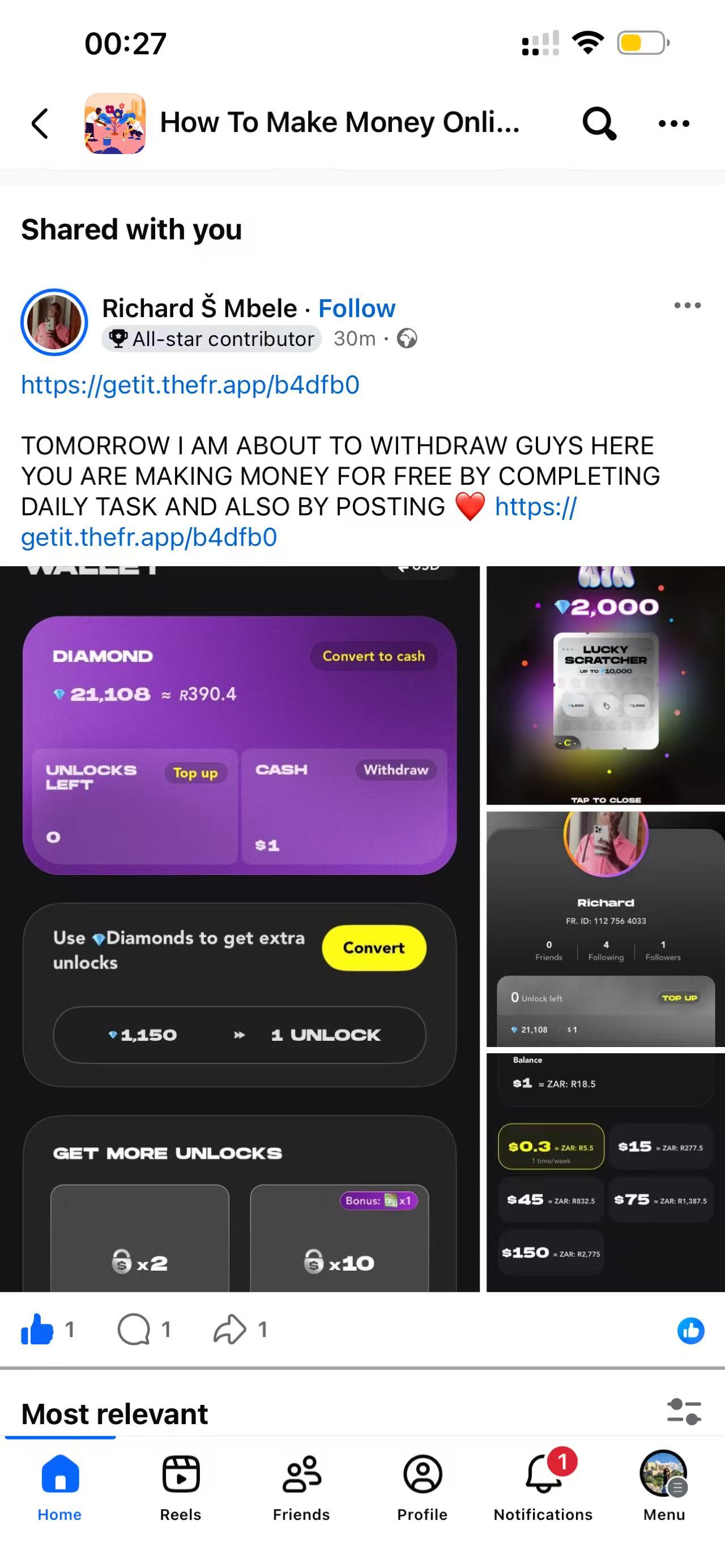 Instagram3 months in. $200+ withdrawn. Unlock content daily, win big diamonds — Fr. App is easily the most underrated app rn 🔥