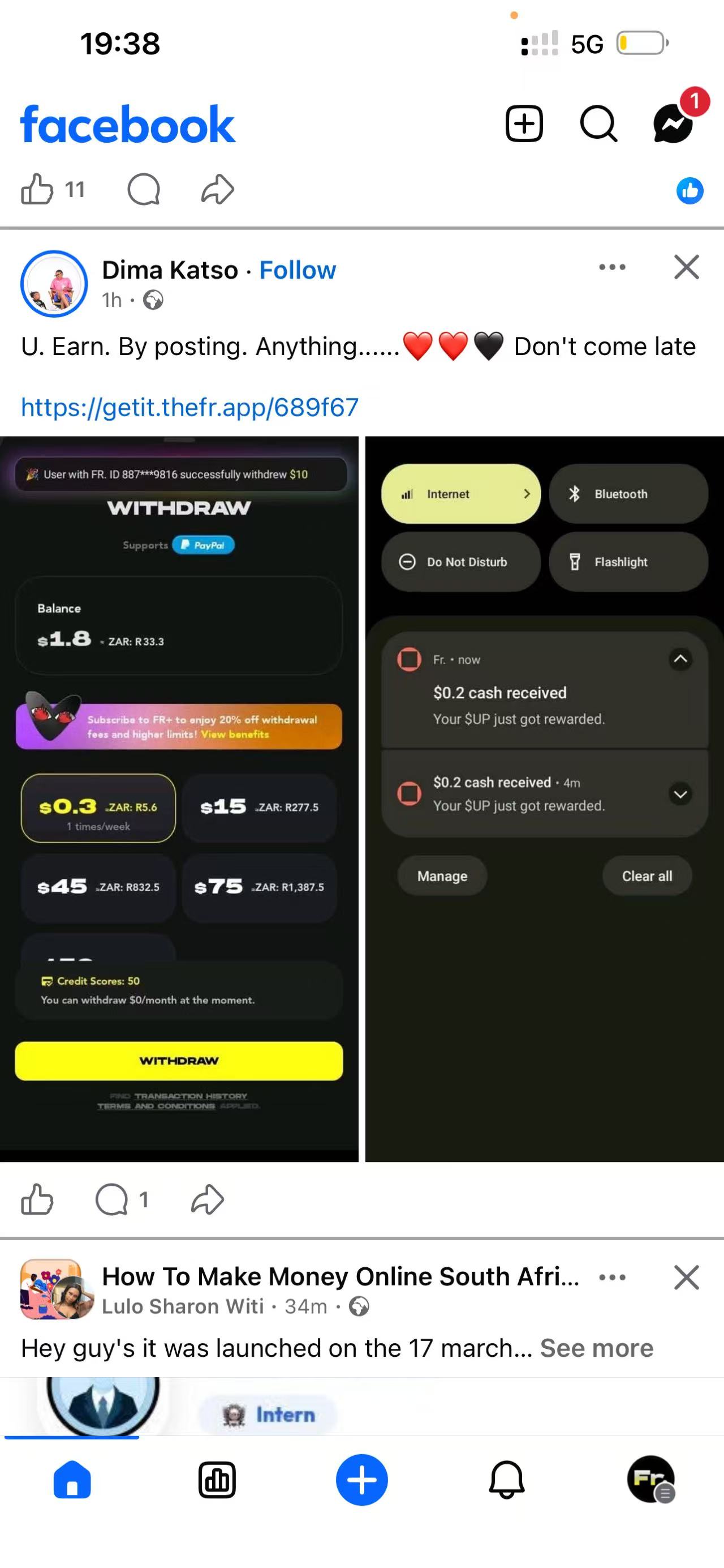 TwitterDay 14 on Fr. App — $89 withdrawn to PayPal so far. Just unlocking posts and collecting diamonds. No cap, this app is different.
